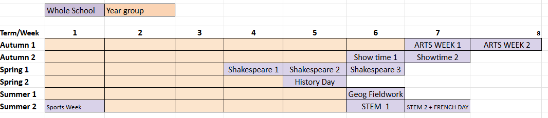 Our Themed weeks are as below. These weeks allow for immersion alongside visits, visitors and experiences linked to exciting learning.